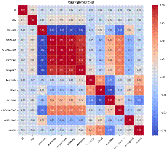 特征相关性分析表明,露点温度与湿度呈强正相关,日照时数与云量呈负相关,验证了数据集的内在一致性。这种关联模式为后续模型构建提供了气象学依据。