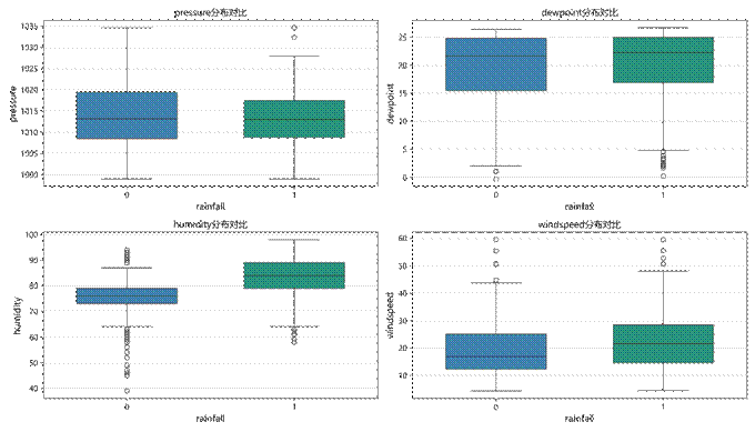 图2 气象要素对降雨情况的箱线图