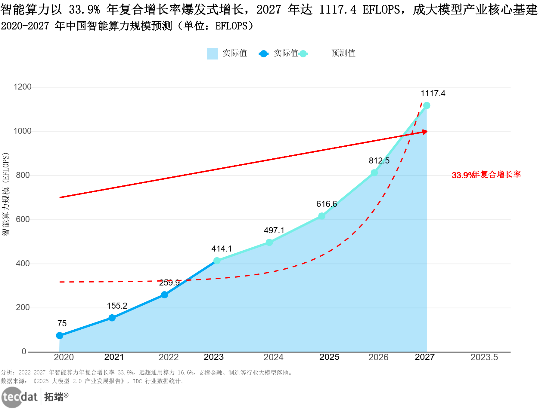 大模型技术正经历从“参数竞赛”到“场景落地”的关键转折。2024年高考数学测试中,主流大模型平均分仅达70%,GPT-4o得分42分的表现暴露出逻辑推理的本质缺陷;而中国智能算力以33.9%的年复合增长率飙升至2027年的1117.4 EFLOPS,又彰显着产业对算力基础设施的迫切需求。这种“能力瓶颈”与“算力爆炸”的矛盾,构成了2025年大模型行业发展的核心命题。当工具调用准确率与人类表现仍存在27.6%的差距,当金融业智算网络需要支撑万亿参数模型的200Gbps通信需求,行业正站在技术可行性与商业价值的十字路口,亟待以数据驱动的视角重构发展路径。