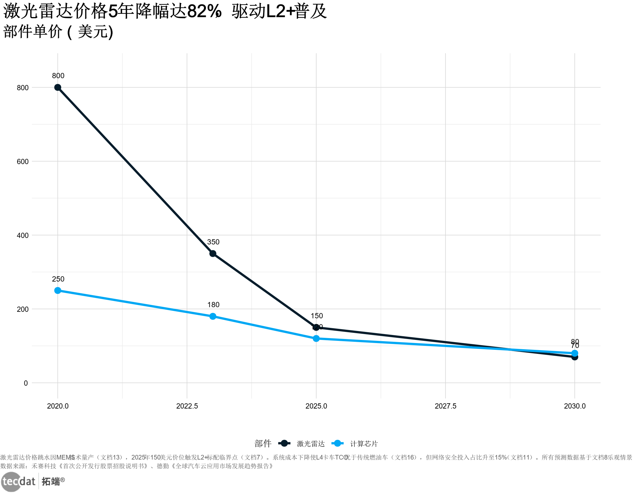 自动驾驶核心部件成本变迁(2020-2030E)图表数据及PDF模板已分享到会员群