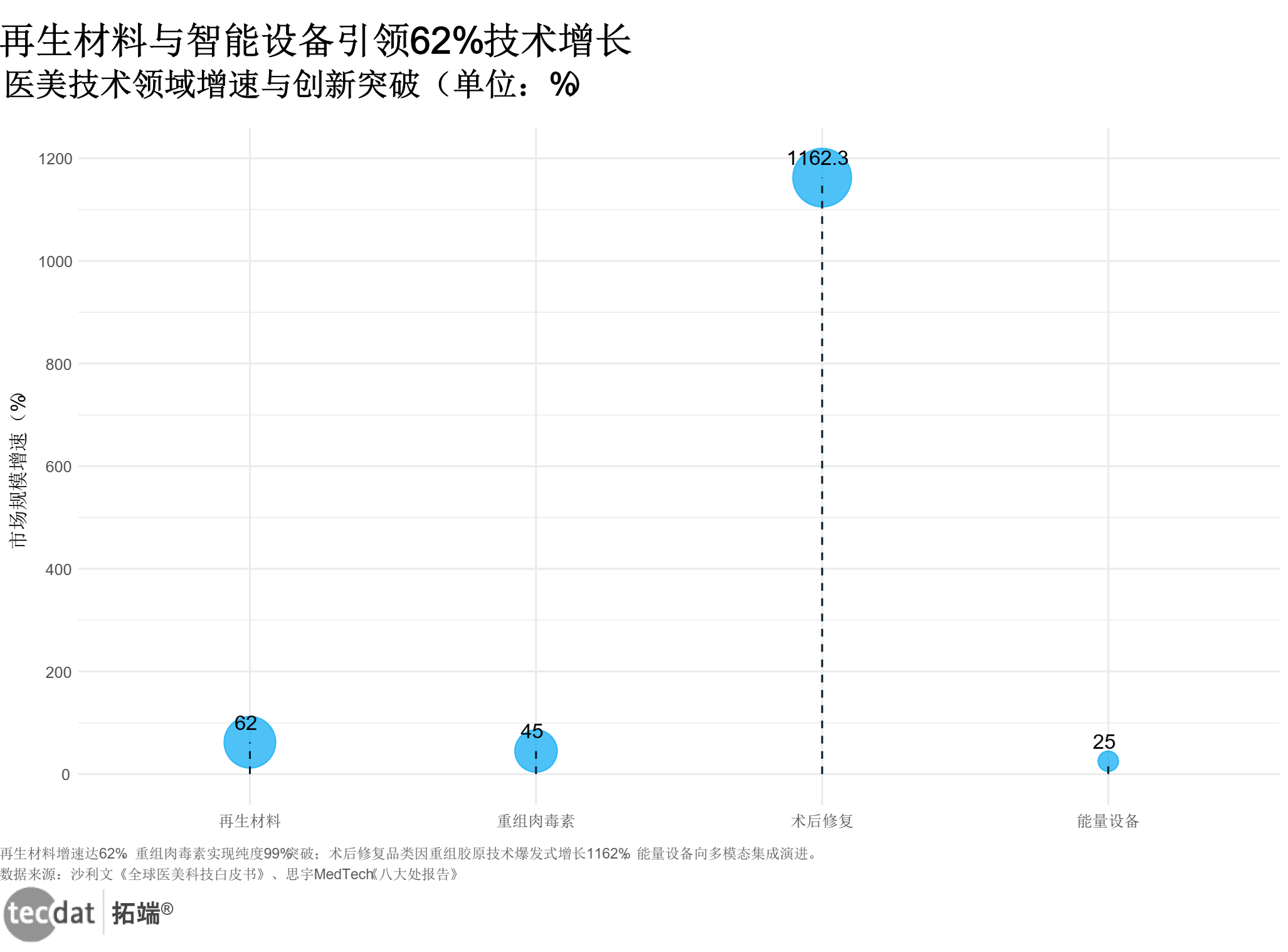《全球医美科技白皮书2025》(思宇MedTech) 再生材料市场增速62% 高于轻医美整体增速 聚焦高增长细分赛道,样本偏向技术型企业