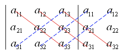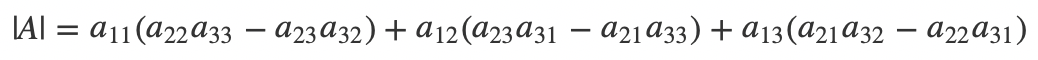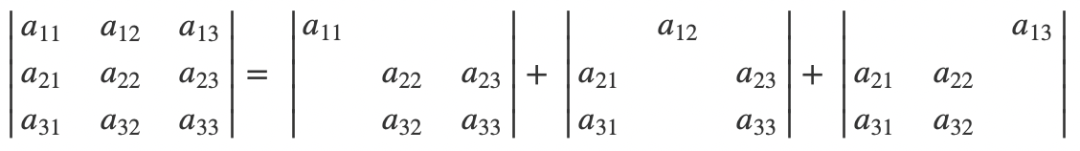 其实本质上来说,还是对角线的乘积差,即所有正向(从左上往右下)对角线的乘积和减去反向(从右上往左下)对角线的乘积和。