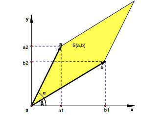如果我们将它画出来,它其实表示这两个向量的平行四边形面积。