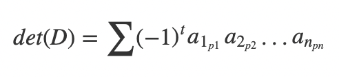 假设自然数1,2,3...n的一个排列为p1,p2,p3,...,pn,这个排列的逆序数为t。那么我们可以写出D的行列式: