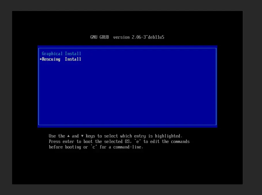 - 在 Grub 菜单中选择 Rescuing Install 模式来安装