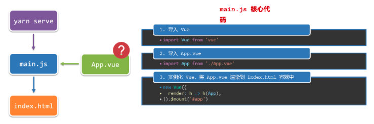 // Vue实例化,提供render方法 → 基于App.vue创建结构渲染index.html