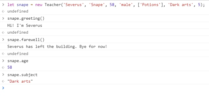 let leia = new Person('Leia', 'Organa', 19, 'female', ['Government']);