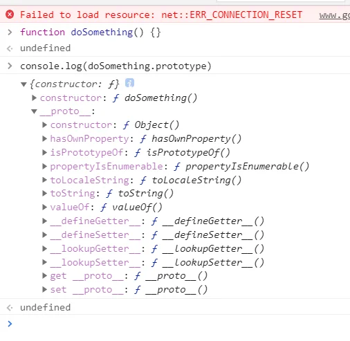 通过new标识符实例化对象后查看在对象上添加的属性,可以看到doSomeInstancing的__proto__属性即doSomething.prototype: