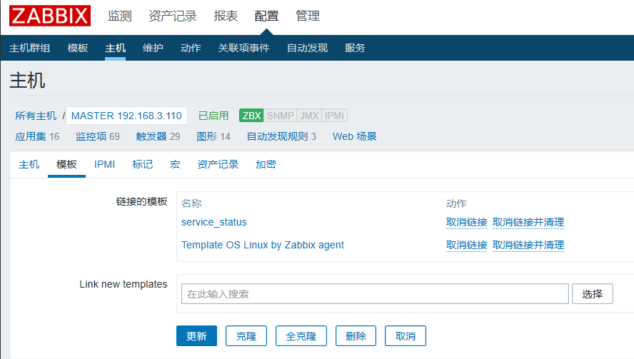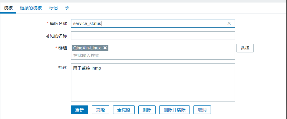 描述:该实战是完全创建一个新的模板,用于专们管理日常的一些服务等,在新建的模板上面创建对应服务的监控项、触发器、动作等。