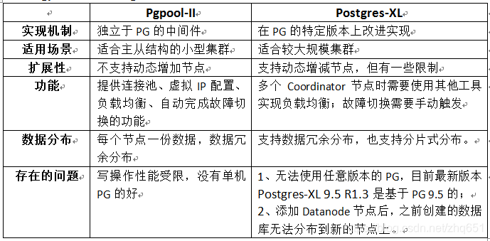 2、 Pgpool-II和Postgres-XL对比