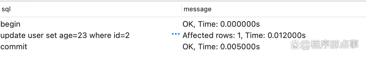 例如开启一个事务1,在事务中更新id=1的用户的年龄: