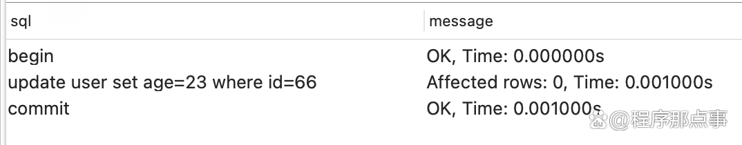 begin;select * from user where id=66 for update;update user set age=22 where id=66 ;