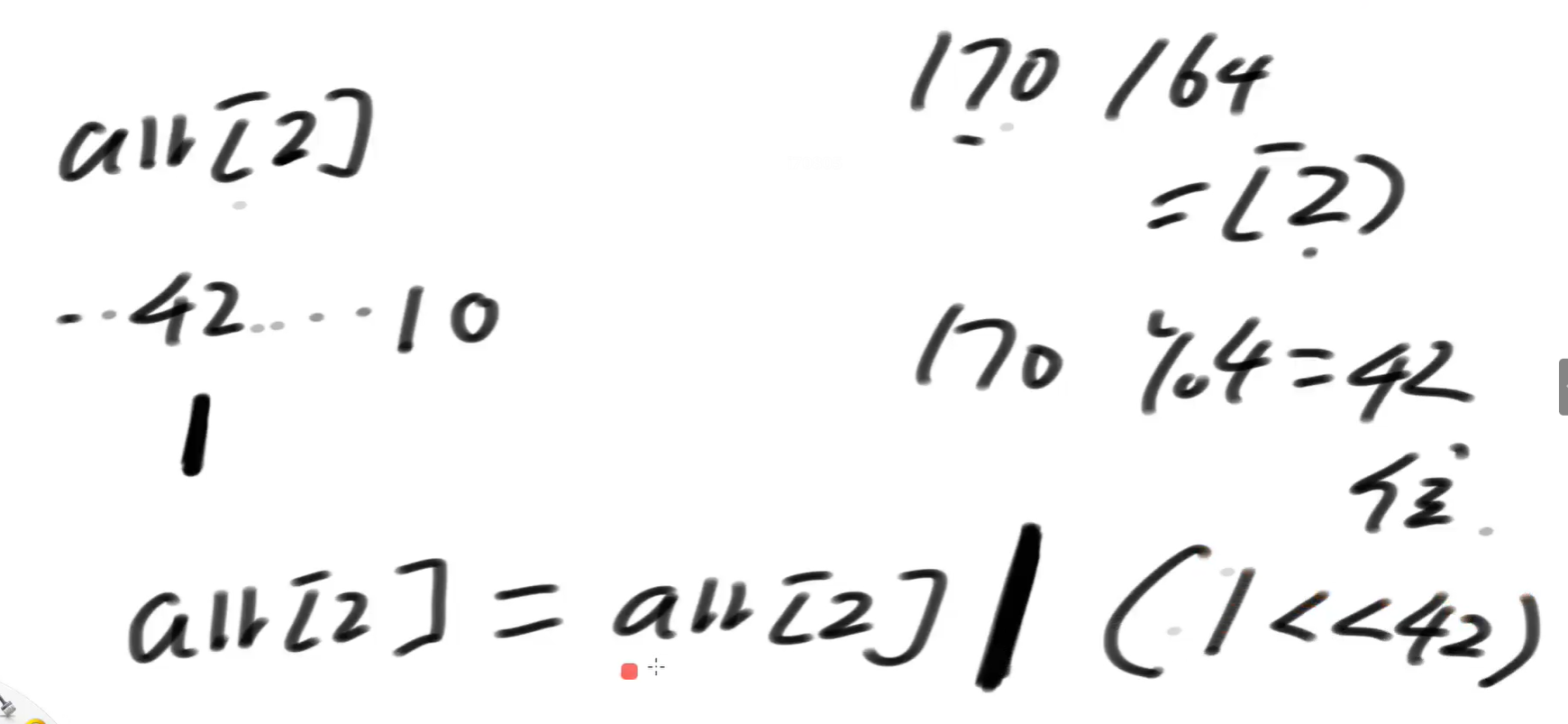 170到底是这个bit[i]这个整数的第几位呢? ——170 % 64