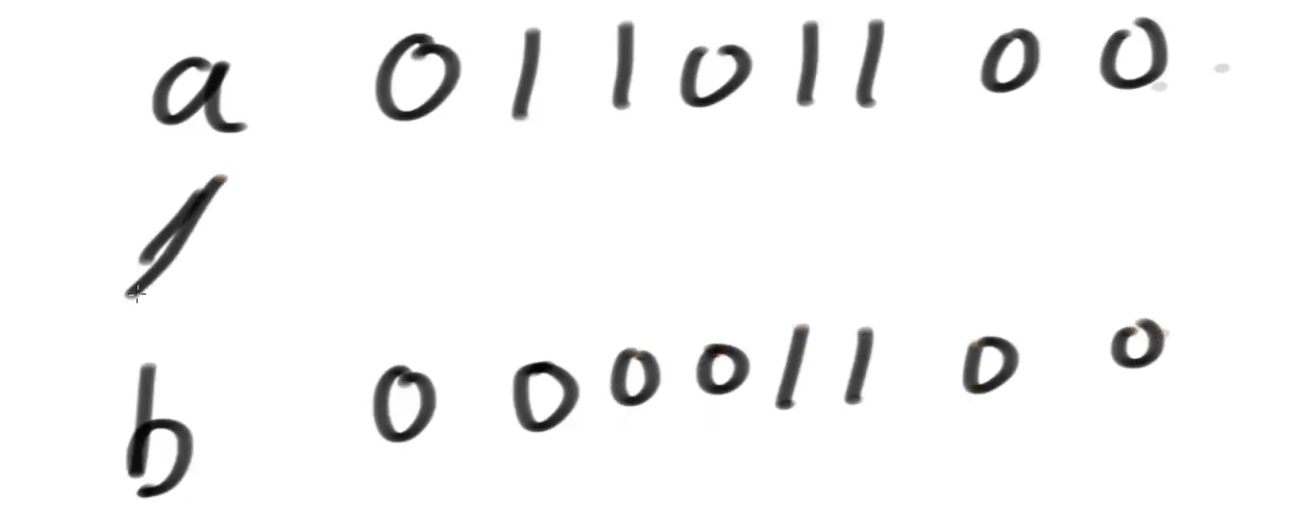 a我先看看,最大的2的某次方 * b,而且2ⁿ*b不能超过a,找到最大2的某次方。假设是7,那么我就知道最终结果7的位置上一定是1。