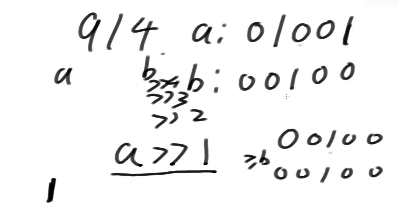 a>>0后,并不比b大,for循环结束。res 等于2进制的 10,返回2。所以div方法除不尽也没事。