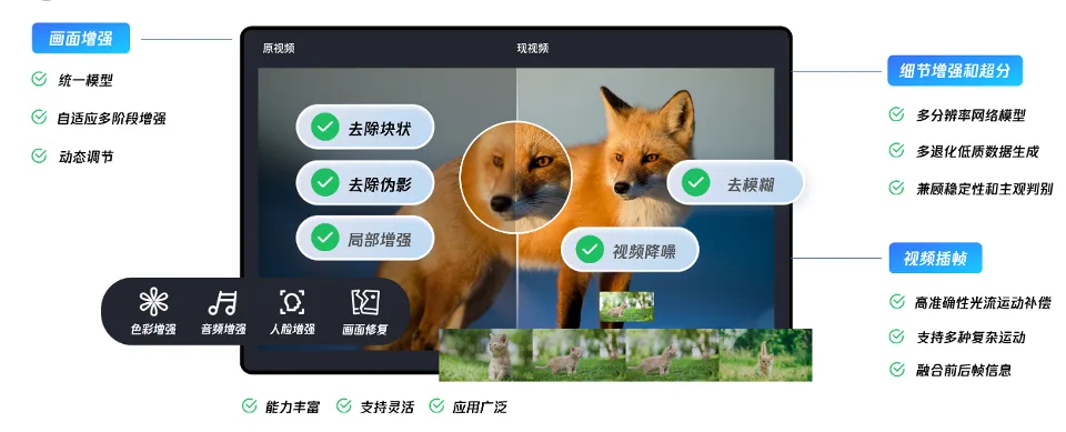 此外,腾讯云MPS还结合AI技术,对视频进行智能分析和优化,自动调整画面的亮度、对比度、色彩等参数,使视频画质达到最佳状态。并通过深度学习算法,在终端播放时,将低分辨率的视频实时超分至高分辨率,让画面更加清晰细腻。