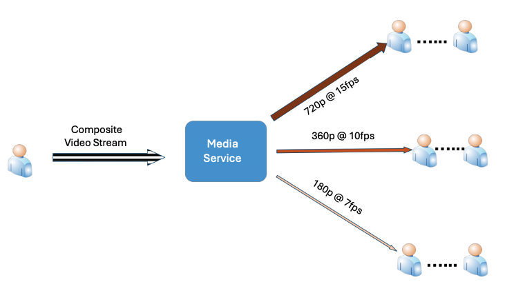 简而言之,拥塞应对措施就是根据网络当前的拥塞状况计算出合适的发送速率来控制媒体发送端的总发送速率。根据发送端所采取的其他弱网对抗策略,可能的速率调节手段包括调节音视频编码器速率、调节重传速率、调节 FEC 冗余度等,详见本文后续介绍。如果发送端是中间转发节点,则调节手段还包括 SVC 码流适配、大小流码流适配等,如下图所示: