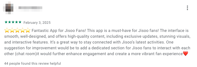 在BLACKPINK 成员 Jisoo 所推出的官方粉丝平台“JISOO”上,目前官方提供了动态、新闻、日常更新等功能来拉近与粉丝的距离,但我们也能从评论区看到,很多粉丝希望能够在实时获取Jisoo动态的同时,还能够与Jisoo进行更多交流。而AI实时对话显然是满足粉丝这一核心需求的首选。