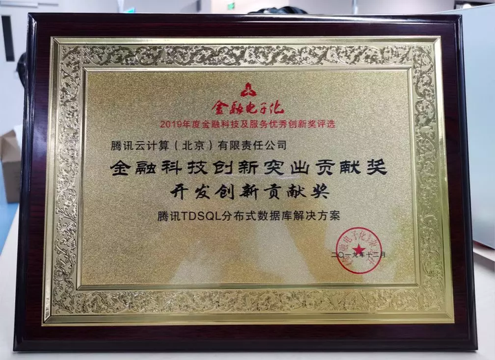 近日,由《金融电子化》杂志社主办、北京金融科技产业联盟协办的“2019中国金融科技年会暨第十届金融科技及服务优秀创新奖颁奖典礼”在京成功召开,会上公布了2019年度金融科技及服务优秀创新奖的评选结果并颁奖,腾讯云国产数据库TDSQL作为金融级分布式数据库,凭借一直以来在金融行业核心交易业务的突破创新和应用实践,荣获“2019金融科技创新突出贡献奖——开发创新贡献奖”。