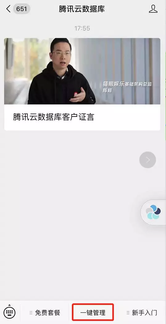 关注“腾讯云数据库”公众号(即本公众号),点击底部菜单【一键管理】,开启移动端数据库运维DBbrain的体验之旅。
