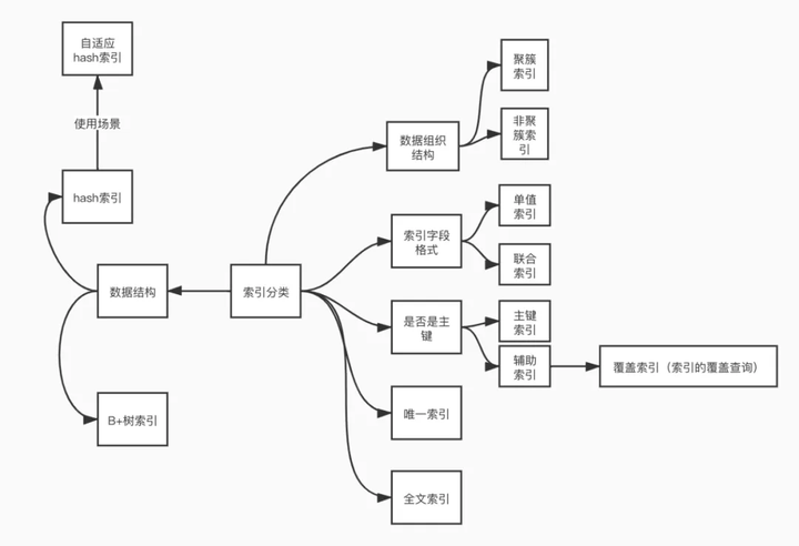 MySQL的索引分类问题一直让人头疼,几乎所有的资料都会给你列一个长长的清单,给你介绍什么主键索引、单值索引,覆盖索引,自适应哈希索引,全文索引,聚簇索引,非聚簇索引等……给人的感觉就是云里雾里,好像MySQL索引的实现方式有很多种,但是都没有一个清晰的分类。所以本人尝试总结了一下如何给MySQL的索引类型分类,便于大家记忆,由于MySQL中支持多种存储引擎,在不同的存储引擎中实现略微有所差距,下文中如果没有特殊声明,默认指的都是InnoDB存储引擎。