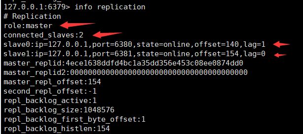 为了做实验建立端口为6379,6380,6381的三个redis服务器,6379为主服务器,剩下两个为从服务器。