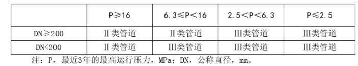 - 按照介质类型、压力等级和管径等因素,将管道划分为Ⅰ、Ⅱ、Ⅲ类管道。
