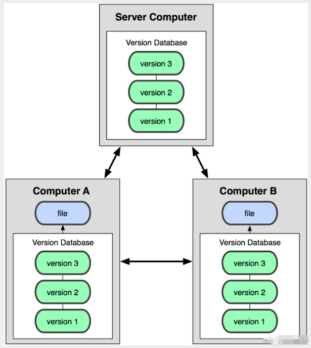 所有版本信息仓库全部同步到每个用户,这样就可以在本地查看所有版本历史,可以离线在本地提交,只需在连网时push到相应的服务器或其他用户那里。由于每个用户那里保存的都是所有的版本数据,只要有一个用户的设备没有问题就可以恢复所有的数据,但这增加了本地存储空间的占用。