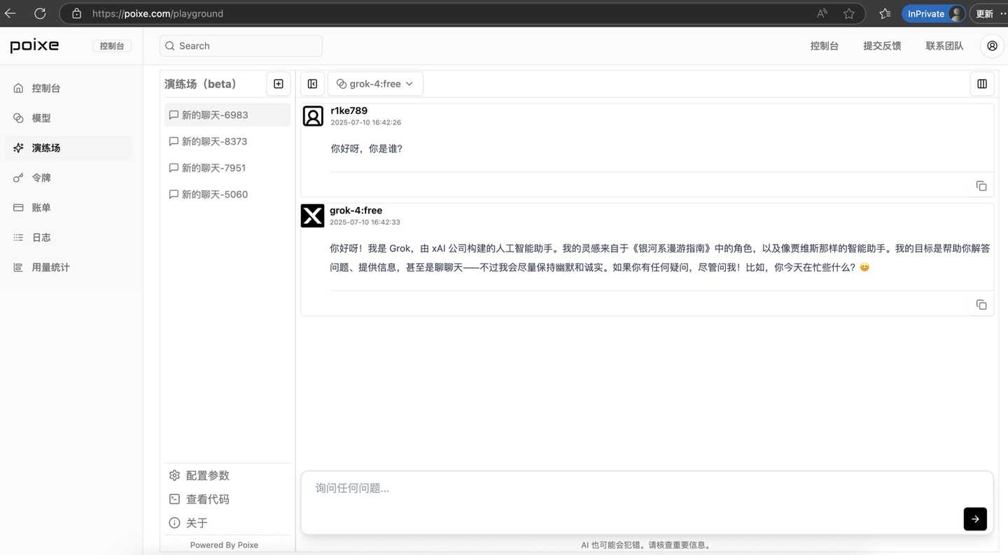 如何使用 Poixe AI 提供的 Grok 4 免费模型,支持 API 调用 [x.AI 最新发布]