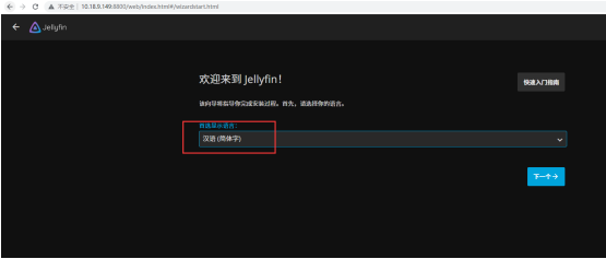 9.设置完docker镜像后,就可以通过网页来访问媒体服务器了,访问地址是铁威马IP+docker容器的本地端口,设置语言。
