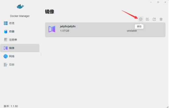 3.单击桌面打开Docker,注册表,在搜索框中输入Jellyfin,点击下载。