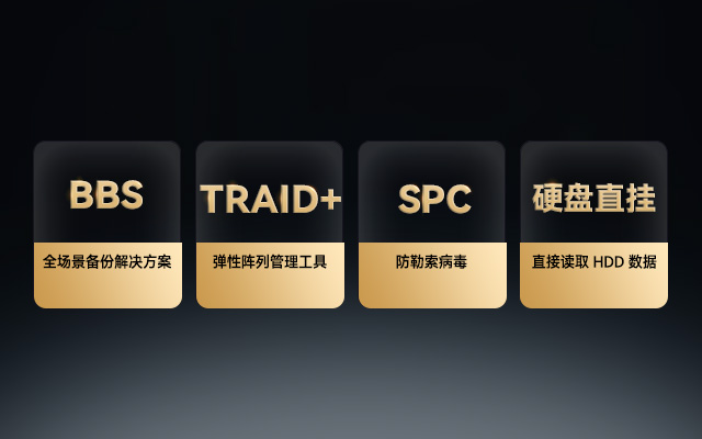 TOS 6的功能包括TRAID弹性阵列管理工具、SPC防勒索病毒工具、硬盘直挂直接读取HDD数据功能等。