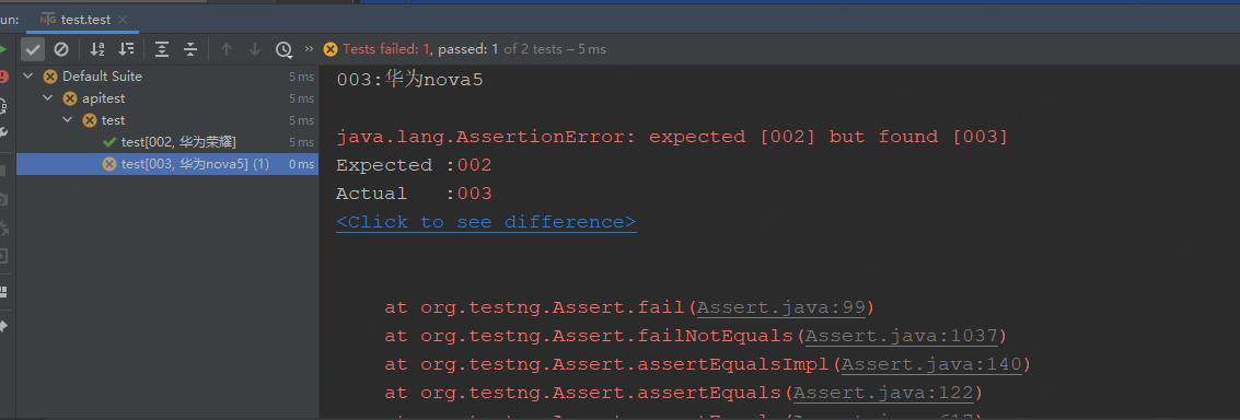 Assert.assertEquals(name,"华为荣耀");