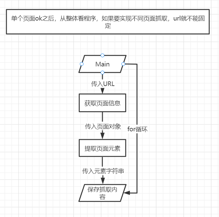 - v1.0单个页面抓取:传入固定url,提取一个页面元素,进行元素保存
