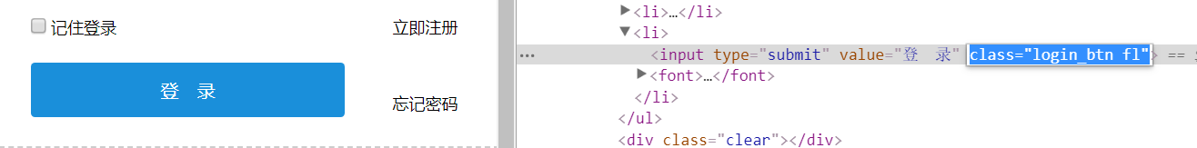 - 检查登录按钮页面元素,通过class定位,click()点击