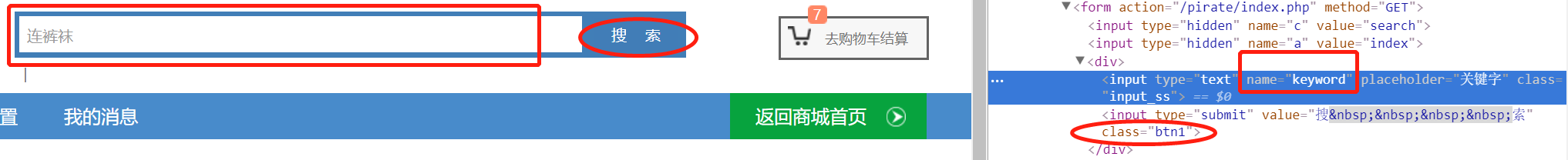 # *********************【第三种元素定位方法:name】********************* # 搜索商品 shop_wdr.find_element_by_name('keyword').send_keys('连裤袜') shop_wdr.find_element_by_class_name('btn1').click()