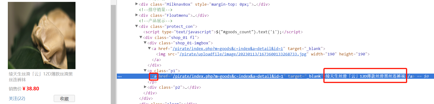 - 检查商品的页面元素,发现有a标签,通过name定位