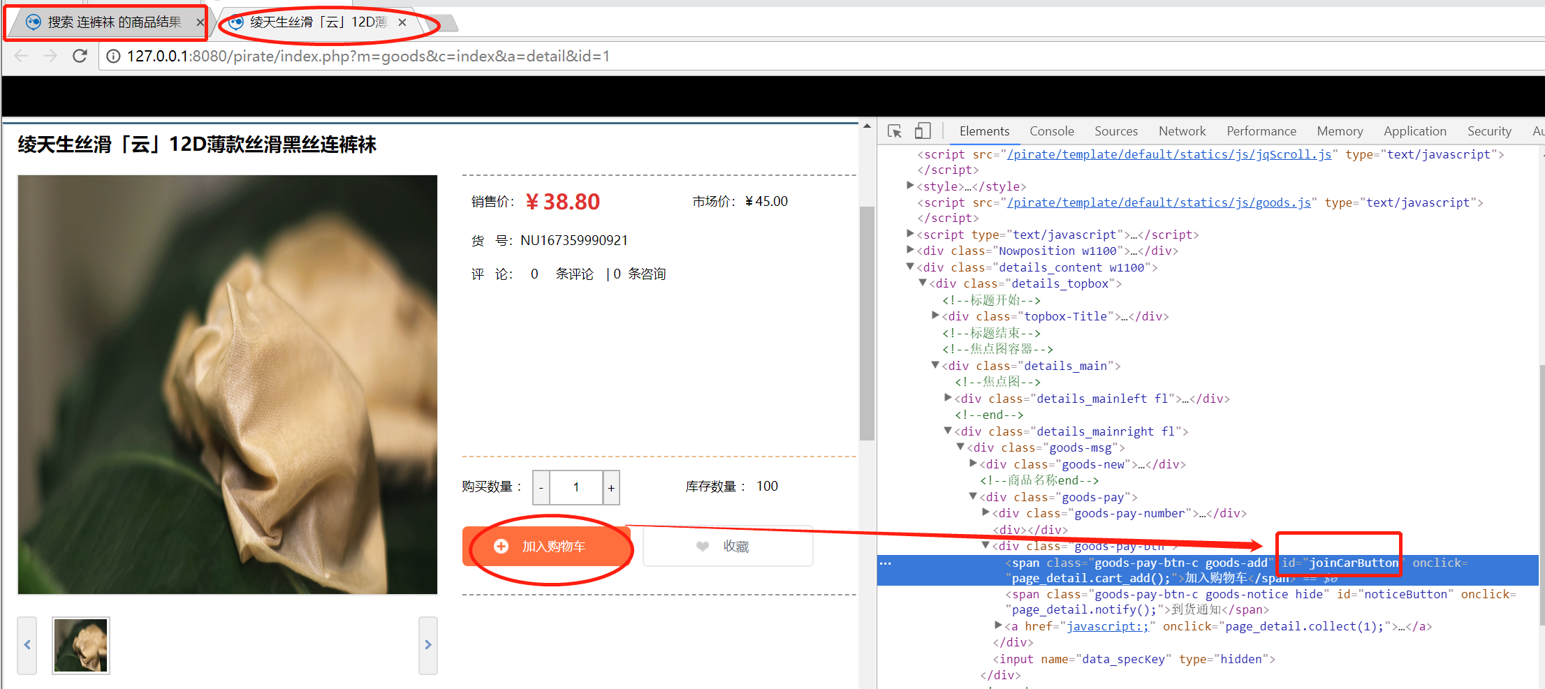 # 需要指定操作的页面窗口 new_windows = shop_wdr.window_handles[1] # 页面窗口切换 shop_wdr.switch_to.window(new_windows) # *********************【第五种元素定位方法:xpath】********************* # 加入购物车 shop_wdr.find_element_by_xpath('//*[@id="joinCarButton"]').click()