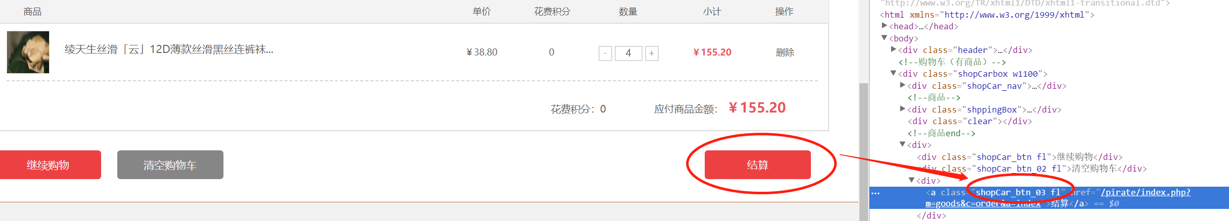 # 去购物车结算 shop_wdr.find_element_by_class_name('shopCar_T_span3').click() # *********************【第六种元素定位方法:css_selector】********************* shop_wdr.find_element_by_css_selector('.shopCar_btn_03.fl').click()