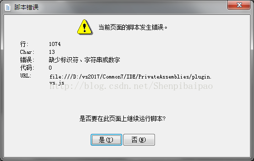 visual studio 2017编译运行出现脚本发生错误等问题如何解决?