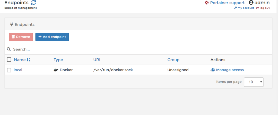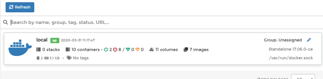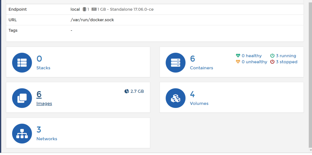 登录进去,可以看到当前及宿主机的一些基本硬件信息,现在看到local 是宿主机portainer 支持docker 多节点的管理