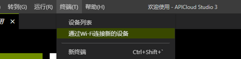 我们在开发工具中点击终端,然后选择通过Wi-Fi连接新的设备。