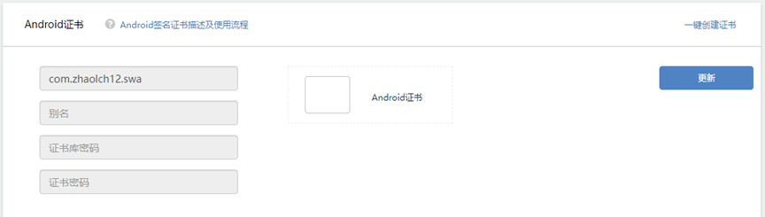 在开发控制台中点击证书,然后点击右上角的一键创建证书,输入相应的信息和密码就可以成功创建了。