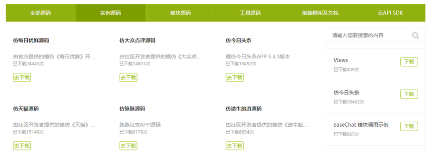我的代码只是简单的写了一个按钮,如果大家想要快速的开发一款功能成熟的app,也可以像我之前毕设那样,把一些现成的源码导入到项目中来做一个参考。源码下载地址:https://www.apicloud.com/source_code/shiliyuanma