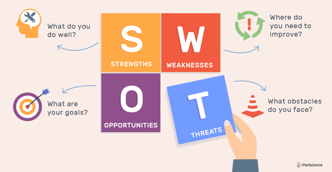 最后一面是跟HR老大面试。刚坐下来,面试官二话不说就操起了一张A4张,横竖画了一个类似坐标系的图,再在四个分区分别写上 S W O T,也就是进行传说中的SWOT分析。