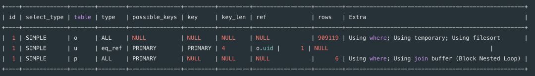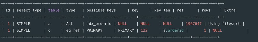 MySQL 不能利用索引进行混合排序。但在某些场景,还是有机会使用特殊方法提升性能的。执行计划显示为全表扫描: