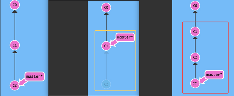 执行后,master 分支移回到了 C1;现在我们的本地代码库根本就不知道有 C2 这个提交了