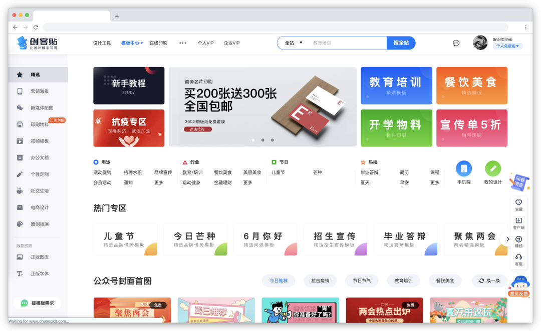 我的公众号首页封面图就是通过这个网站制作的。通过这个网站你可以制作好看的海报、简历、新媒体文章的首页图等等,这个网站甚至还有很多免费且好看的 PPT插件,简直是神器。