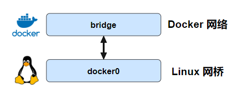 Docker 默认的 bridge 网络和 Linux 内核中的 “docker0” 网桥是一个对应关系,如图所示。bridge 是 Docker 中对网络的命名,而 docker0 是内核中网桥的名字。(个人理解:你就可以把 bridge 和 docker0 当成 Linux 网桥的两个名字,两个都是代表同一个东西。docker 为了管理网络,又给 docker0 这个网桥取名为 bridge)。