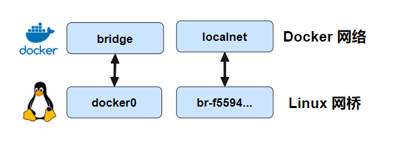 # 创建新的单机桥接网络,名为 localnet,其中 -d 不指定的话,默认是 bridge 驱动。并且主机内核中也会创建一个新的网桥。